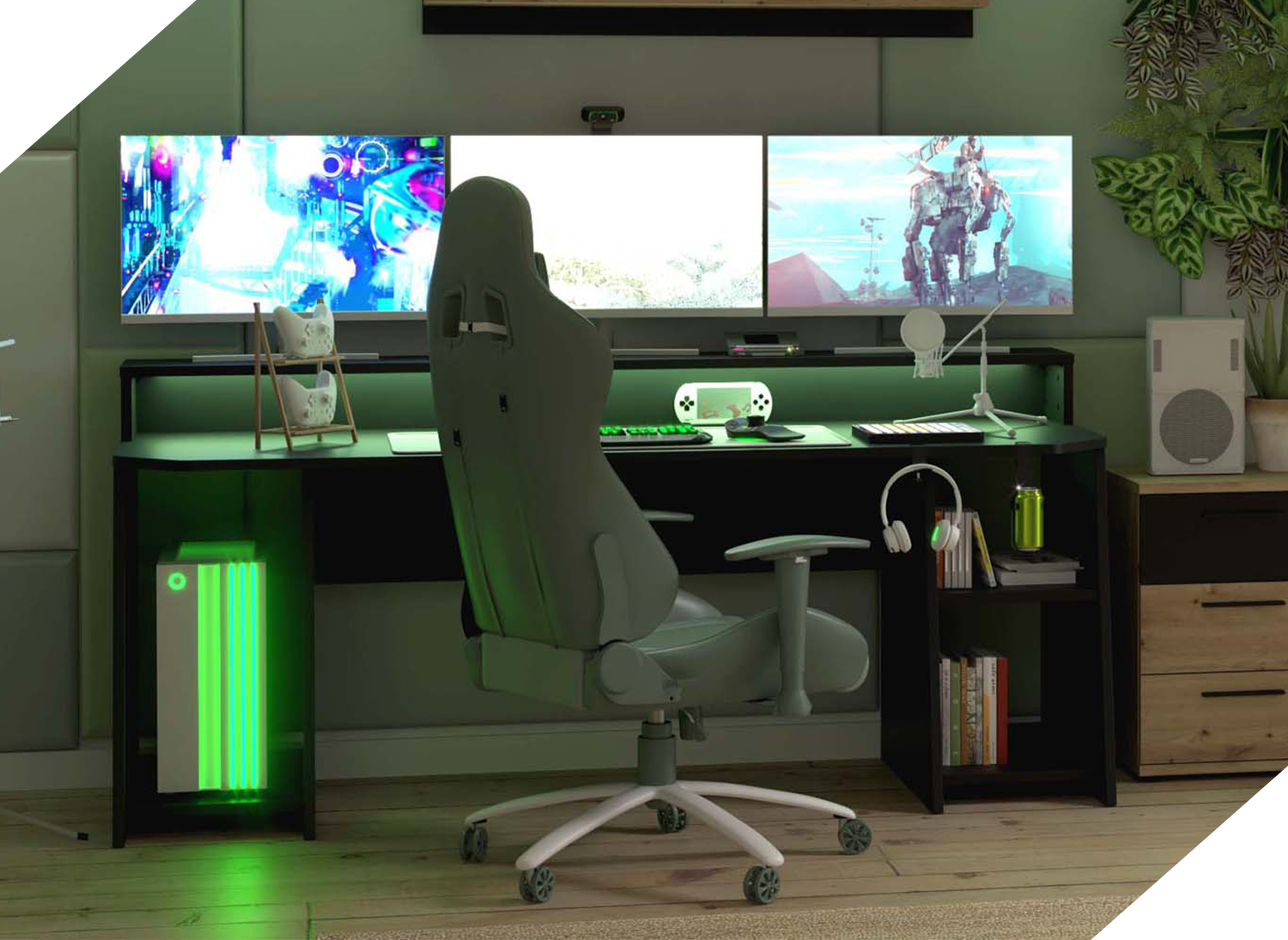Chcesz stworzyć cały gaming room? Wybierz pozostałe meble z naszej oferty. Łatwo dopasujesz je designem oraz skompletujesz zestaw idealny. Jeżeli potrzebujesz inspiracji, udostępniamy pomysły na wystrój oraz aranżację w zakładce INSPIRACJE. Jeżeli potrzebujesz pomocy w wyborze, skontaktuj się z nami na czacie, nasi konsultanci chętnie pomogą z wyborem najlepiej dopasowanym do Twoich potrzeb.