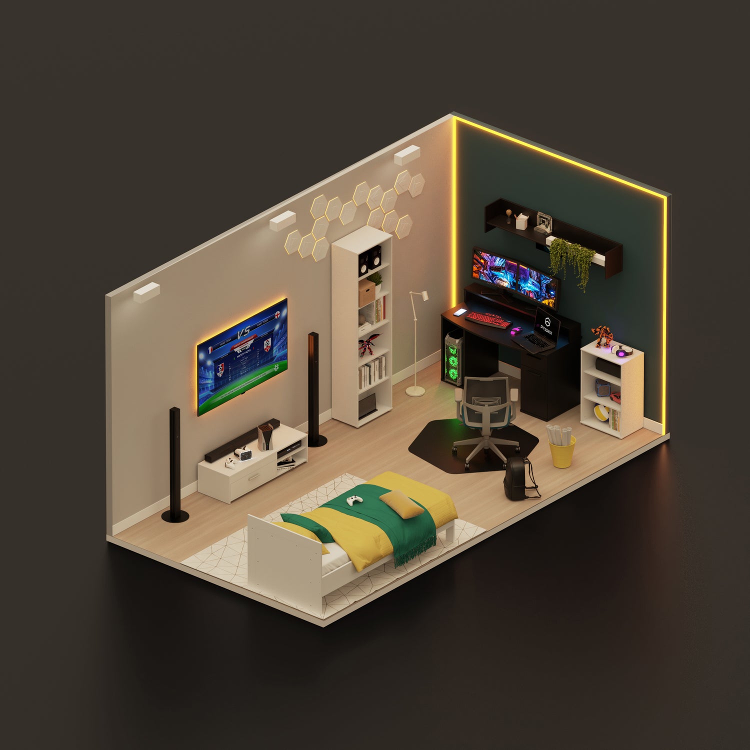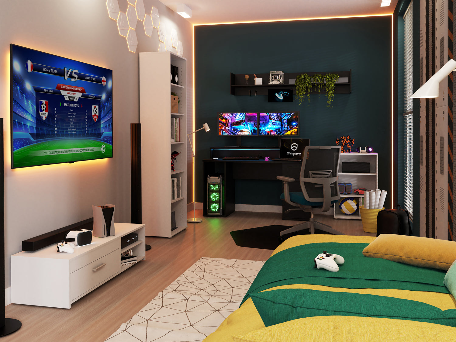 Jak widzisz, malutkie pomieszczenie, również może mieć swój niepowtarzalny wygląd, a jeśli wszystko dobrze przemyślimy to na spokojnie zmieścimy tam dosłownie wszystko. Teraz już nie będziesz miał problemu żeby pogodzić szkolne życie i obowiązki z Twoimi ulubionymi grami! To kiedy zagrasz swoją przestrzenią i zrobisz jej transformację w mały pokój gamingowy w jasnych kolorach z naszej inspiracji?